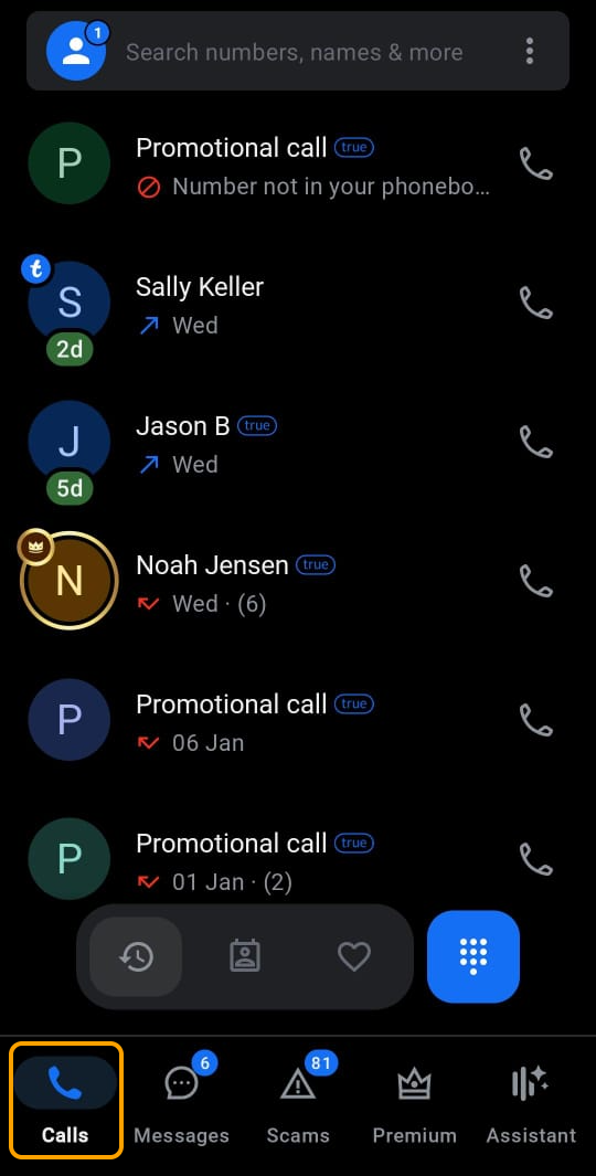 The Calls and Messages tab have been combined into the new Home tab, which provides a view of all your communication - calls, SMS, IM (chat), and Truecaller voice calls - in one place.