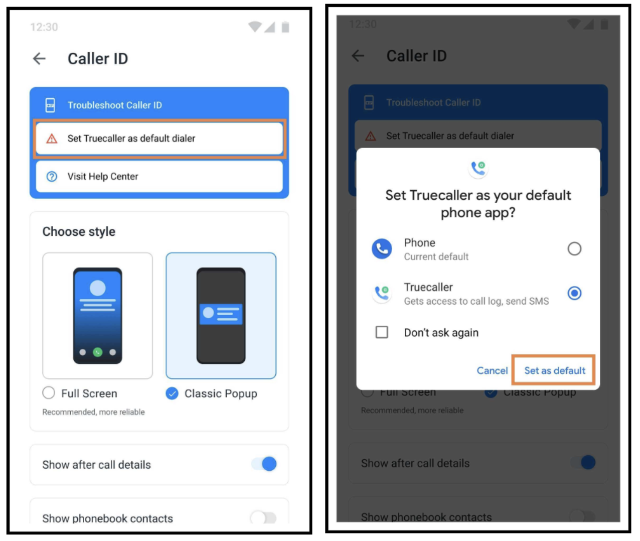- Set Truecaller as your default dialer. (Please refer to the screenshots below):